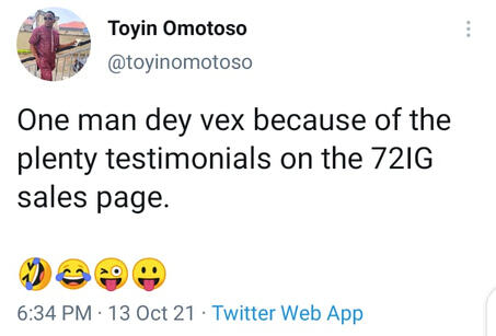 You will be learning how to make use of your WhatsApp to grow your business and drive massive sales daily. This will be achieved with the 72IG WhatsApp Income Generator✅ You shall be learning how to sell with Email marketing, advanced methods and strategies on selling with Facebook, Instagram. PLUS over 7,000 CONFIRMED buyers lists to help you sell faster✅ You will be learning how to install WordPress and Thrive architectand further, how to design a landing page using a website page builder called Thrive Architect. With this, you can even design a page for your current business (Just like this my own)✅ You are getting a done for you WhatsApp Income campaign for 3 hot selling products on Expertnaire to help you start making money as fast as possible✅ You are getting (FOR FREE) Toyin Omotoso’s Twitter Money Blueprint which gives you tons of free organic traffic to your WhatsApp. (Toyin is selling this for N25,000)If you already use Facebook to sell your products, You shall be learning what to do if Facebook bans your account✅ And you will also be getting access to a 3-hour weekly online support class where we will also be helping you tackle any of the challenges you might have. (Value – Priceless)And many more…Within the next 3mins, you will get tired of seeing and hearing testimonies by hundreds of people who have started this training. Don’t be like the man below